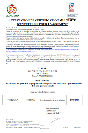 Agrément pour la distribution de produits de protection santé végétale
